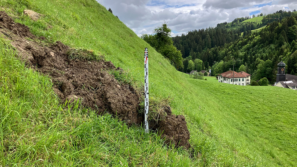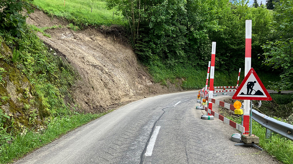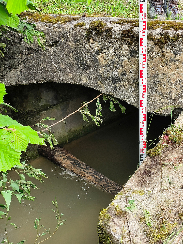 Le week-end dernier, notre équipe de l'Office de l'environnement du canton de Thurgovie a été appelée pour une intervention urgente dans la commune de Fischingen. Un violent orage local a provoqué le débordement du Schärlibach et l'eau du ruisseau ainsi que le ruissellement de surface ont causé des dégâts considérables dans la commune ainsi qu'en amont du ruisseau. De plus, des coulées de boue locales se sont produites dans certaines régions.