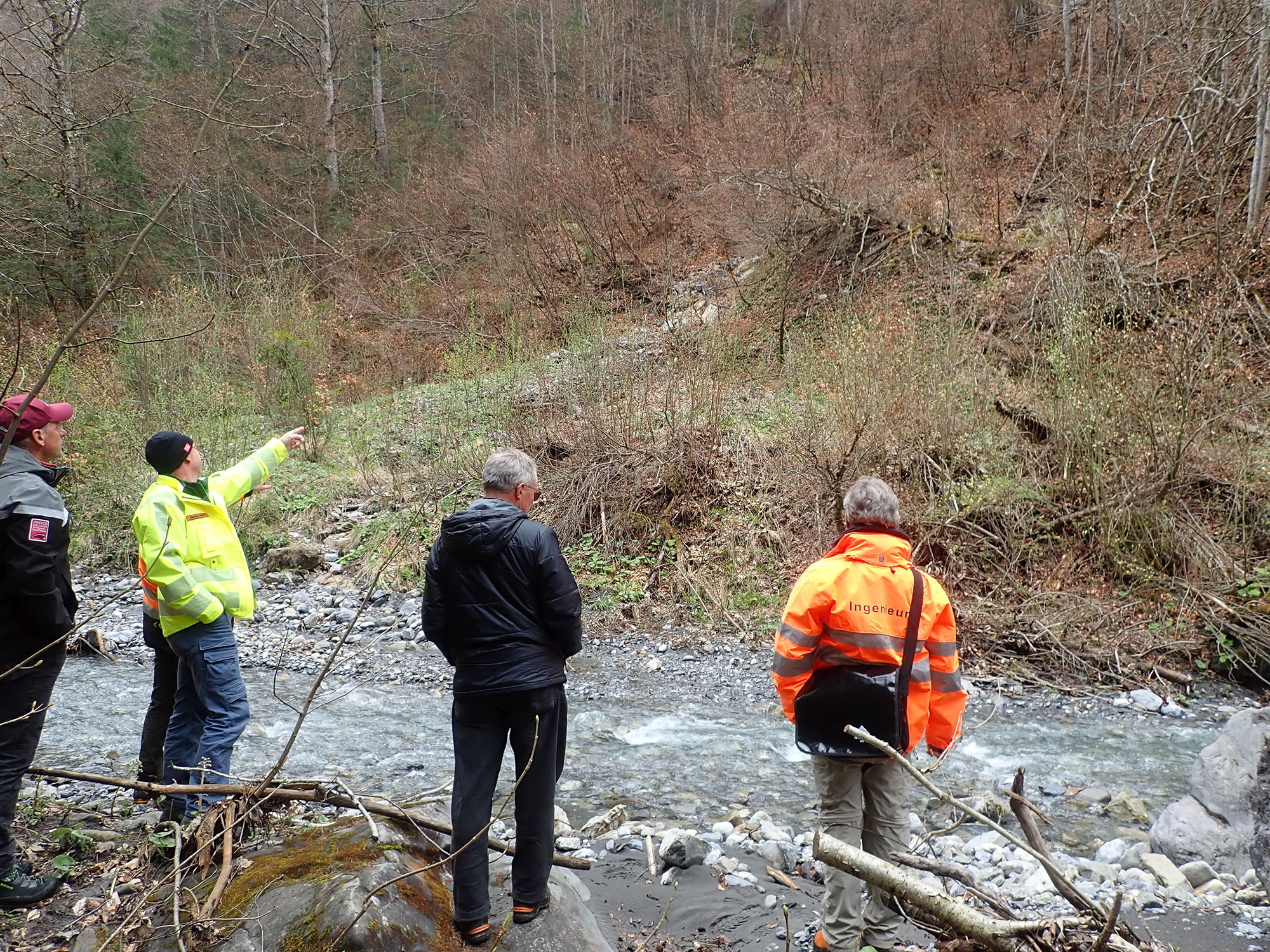 Deux journées de terrain pluvieuses dans la commune ont permis d'imaginer facilement les effets du ruissellement de surface et des inondations sur les localités. Les restes d'avalanches et les petits éboulements sur les routes ont mis en évidence les défis auxquels les forces d'intervention doivent faire face chaque jour en montagne. Grâce à leur longue expérience, les biens nécessitant une protection ont pu être rapidement identifiés.
